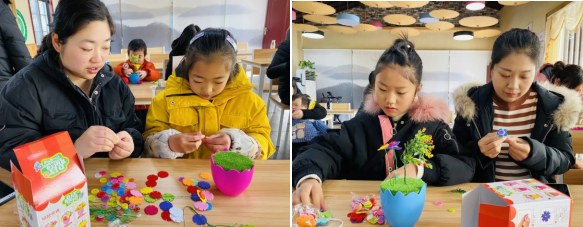 另外,活動(dòng)還開(kāi)展了DIY趣味手工小游戲,小朋友們選擇好自己喜歡的花瓣,在老師和家長(zhǎng)的引導(dǎo)下,通過(guò)穿孔、疊加紐扣、旋轉(zhuǎn)加固等環(huán)節(jié)細(xì)心地做成一朵朵美麗的花,并把它們安插在自己的花盆里。大家邊手工邊交流,現(xiàn)場(chǎng)氣氛非常溫馨快樂(lè)。最后,孩子們將做好的小花束捧在胸前,用雙手送給喜歡的媽媽和伙伴,以此表達(dá)心中滿滿的感恩之情。