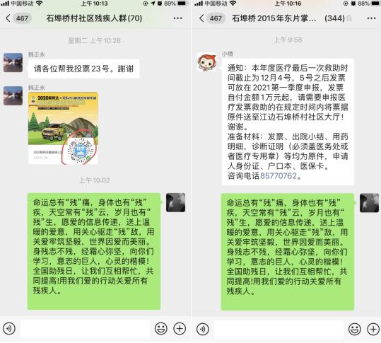 殘障人士因生理上的各種缺陷成為社會中特殊的弱勢群體,往往內(nèi)心封閉,與人保持距離。石埠橋村借助“掌上云社區(qū)”平臺,積極開展各項工作,努力為殘疾人提供服務,開展培訓、義診、免費發(fā)藥、健康體檢等活動普及知識,增進社會對殘疾人的理解與支持?;顒又?,志愿者,以線上宣傳的方式,幫助他們克服自卑與自我封閉心理,引導他們在社會交往中學會相互尊重、相互幫扶,增強他們?nèi)后w歸屬感和人際信任感,重塑自我認知,產(chǎn)生自我效能感,恢復部分社會交往功能,培養(yǎng)更多的親社會行為。同時呼吁社會各界關愛殘疾人,幫助他們進行治療、康復,享受冬日陽光的溫暖,進而回歸社會,提升生活信心和生活質(zhì)量。