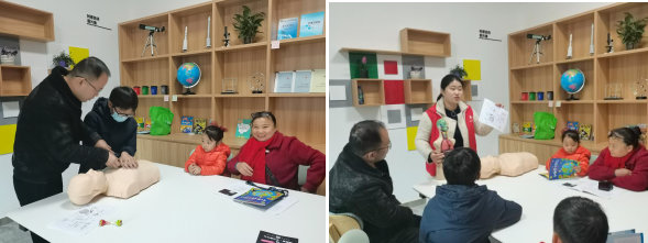 人體是由多種器官構(gòu)成的,不同的器官在人體內(nèi)發(fā)揮著不同的重要作用。課上,老師先帶領(lǐng)孩子們閱讀相關(guān)繪本并講解了人體構(gòu)造的原理以及人體所需的營(yíng)養(yǎng)元素,讓小朋友們有了一個(gè)初步的認(rèn)識(shí)和理解,然后老師拿出準(zhǔn)備好的模型及材料,小朋友們?cè)诶蠋焸兊闹笇?dǎo)下在模板上制作自己喜歡的各種小模型。在現(xiàn)場(chǎng)展示人體構(gòu)造環(huán)節(jié),小朋友們紛紛恍然大悟:“原來(lái)我們身體里面,居然有如此大的秘密!”。認(rèn)識(shí)完人體后,老師現(xiàn)場(chǎng)示范了心肺復(fù)蘇,先檢查口腔是否有異物、通過(guò)兩胸連線的中點(diǎn)確定好正確的按壓位置、雙手交叉擺放進(jìn)行按壓,老師詳細(xì)講解了心肺復(fù)蘇按壓過(guò)程。紙上得來(lái)終覺(jué)淺,絕知此事要躬行,在老師的指導(dǎo)下,在座家長(zhǎng)輪番進(jìn)行心肺復(fù)蘇。