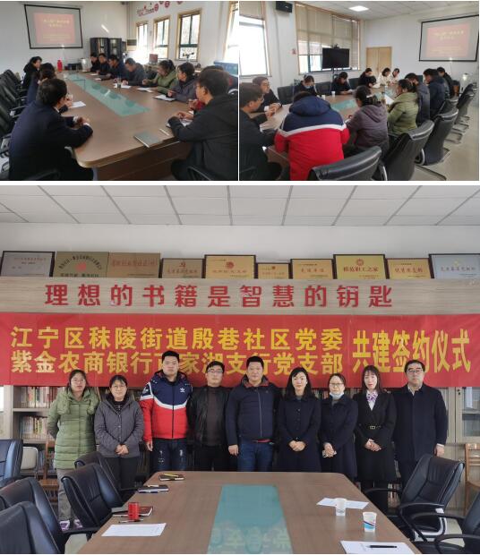 為加強村銀聯(lián)動,加強黨建學(xué)習(xí),構(gòu)建長期互助機制,實施鄉(xiāng)村振興戰(zhàn)略、率先基本實現(xiàn)農(nóng)業(yè)農(nóng)村現(xiàn)代化奠定堅實基礎(chǔ),12月17日上午,江寧區(qū)秣陵街道殷巷社區(qū)黨委與紫金農(nóng)商銀行百家湖支行黨支部達成共建意向,舉辦簽約活動,并舉行了第一次主題黨日活動。