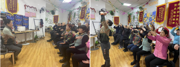 活動(dòng)現(xiàn)場(chǎng),社區(qū)邀請(qǐng)到霎哈嘉冥想瑜伽的木筆老師前來給老人們做拍打和自覺。霎哈嘉瑜伽為錫呂·瑪塔吉女士所創(chuàng),她幾乎以全部時(shí)間四處傳揚(yáng)霎哈嘉瑜伽這種靜坐法,從不收費(fèi),讓人類可以集體大規(guī)模地得到自覺,發(fā)展身心健康?,F(xiàn)在霎哈嘉瑜伽現(xiàn)巳在全球五大洲流傳,共有近108國(guó)巳設(shè)有靜坐班。老人們?cè)诶蠋煹膸ьI(lǐng)下,體驗(yàn)了“九步自覺法”,并且靜心冥想了二十分鐘,都感覺到身心舒暢。老師還跟老人們分享了鹽水泡腳法,討論了“瑜伽”的含義,大家都覺得受益良多。