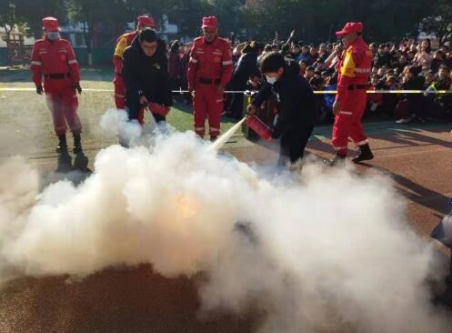 現(xiàn)場,消防教員還為孩子們演示滅火器使用方法,總結(jié)了“一搖二撥三對準(zhǔn)四噴射”的口訣,要求學(xué)生們牢記口訣,并以提問的形式了解學(xué)生的掌握程度。