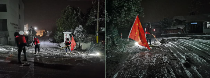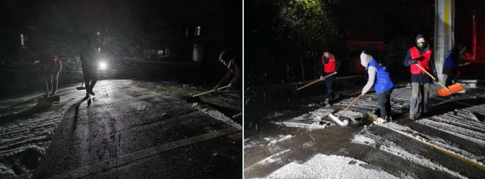 在第一片雪花落地之前,紅旗村早已做好充分的準(zhǔn)備,以“機械除雪為主、融雪劑融雪為輔”的原則,提前準(zhǔn)備了工業(yè)鹽、雪鏟等材料設(shè)備。深夜,村里啟動應(yīng)急預(yù)案,黨員、網(wǎng)格員和志愿者們冒著嚴(yán)寒,在村內(nèi)的主次干道鏟雪,并在樓道、商鋪門口和公交站臺鋪設(shè)草墊,防止路人滑倒。接到村民家中緊急的冰凍、漏水情況,迅速安排人員上門解決問題,受到村民們的一致好評。