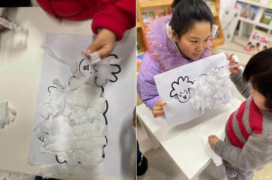 領讀者周老師為孩子們帶來《好孩子是夸出來之不要害怕》繪本故事,通過講述小熊布尼一個人在家不怕黑夜的故事,讓孩子們不由自主的沉迷其中,并了解到兒童繪本的重要意義,感受到繪本故事中的主人公的勇敢、真實,使得他們也能擁有和故事中的小熊布尼一樣的獨立和強大的內心,擁有安全感和自信心,讓孩子們可以勇敢地向外探索,擁抱更精彩的人生。隨后,周老師帶領轄區(qū)的親子家庭一起進行《好冷的小羊》手工課,指導孩子學會如何用面紙巾四處細細長長的衣服,小朋友們交流互動,現場熱鬧非常。