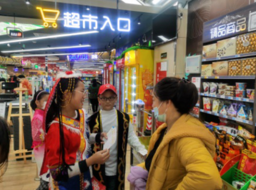 進集市,通過志愿者身著民族服裝展示、民族知識有獎問答、發(fā)放民族宣傳知識折頁等方式,激活市場群體對民族團結促融合的意識。