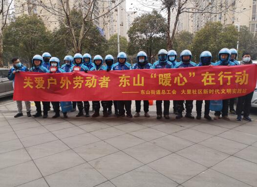 為提高服務(wù)職工精準(zhǔn)化水平,切實(shí)幫助戶外勞動(dòng)者解決生產(chǎn)生活方面的實(shí)際困難,實(shí)現(xiàn)戶外為提高服務(wù)職工勞動(dòng)者“體面勞動(dòng)、舒心工作、全面發(fā)展”,2021年1月5日,江寧區(qū)東山街道總工會(huì)、大里社區(qū)新時(shí)代文明實(shí)踐站開(kāi)展以“關(guān)愛(ài)戶外勞動(dòng)者 東山‘暖心’在行動(dòng)”為主題的活動(dòng),為外賣(mài)小哥、保潔、交警送溫暖。