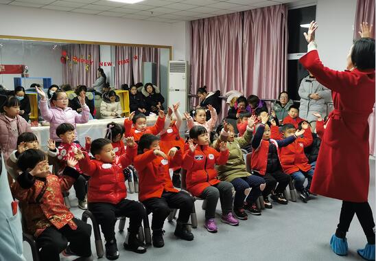參加活動(dòng)的小朋友們都穿著紅衣服,有的穿著紅棉襖,有的穿著紅裙子,還有的穿著紅色唐裝,格外喜慶。活動(dòng)在歌曲《新年好》中拉開序幕,小朋友們?cè)邳h員志愿者的帶領(lǐng)下,隨著音樂律動(dòng)。志愿者還帶著小朋友們一起誦讀了關(guān)于元旦的古代和現(xiàn)代詩歌,教給小朋友們關(guān)于元旦的小知識(shí)。