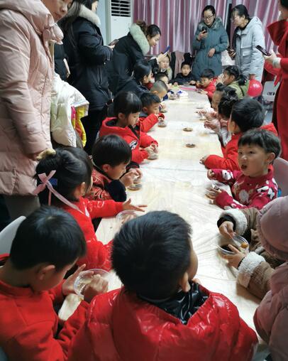 活動(dòng)現(xiàn)場(chǎng)還為小朋友們準(zhǔn)備了湯圓,孩子們一邊吃著湯圓,一邊互相交談著自己的新年愿望,彼此祝福著新年快樂。