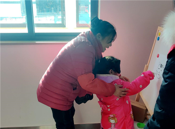 活動(dòng)開始,志愿者首先為在場(chǎng)的親子家庭介紹今天的活動(dòng)流程,孩子們認(rèn)真傾聽,一個(gè)個(gè)躍躍欲試。接著,志愿者引導(dǎo)大家進(jìn)入“默契大考驗(yàn)”環(huán)節(jié),小朋友們帶上眼罩,家長(zhǎng)負(fù)責(zé)指揮孩子為小貓畫上鼻子。只見家長(zhǎng)不時(shí)提醒孩子“往左邊一點(diǎn)!”“等一下歪了歪了!”,小朋友們小心地用手確定位置,努力給可愛的小貓畫上鼻子,現(xiàn)場(chǎng)一片歡聲笑語(yǔ)。