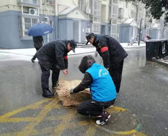 天氣雖然寒冷,雪也非常大,但是都沒有抵擋住大家掃雪的熱情。城市治理志愿者們戴上手套、手持鐵鍬、掃帚,到社區(qū)各個主干道清掃積雪,為出入口鋪設(shè)草墊,攙扶過往的老人、小孩安全出行。據(jù)城市治理志愿者小董說,掃雪化凍單靠環(huán)衛(wèi)工人的力量是遠遠不夠的,身為志愿者理應(yīng)加入掃雪的行列,既能為環(huán)衛(wèi)工人減輕掃雪的負擔(dān),也能為大家出行減少不便。