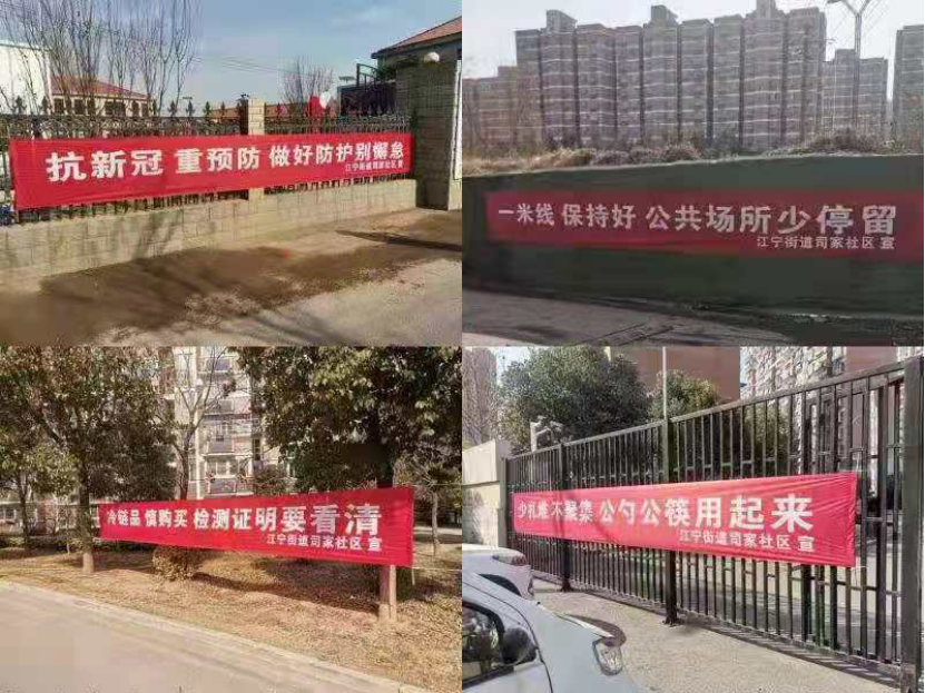 會后,社區(qū)通過粘貼宣傳海報、發(fā)布社區(qū)公眾號、電子屏、懸掛橫幅等方式,提醒村民增強防護意識,對疫情防控工作進一步宣傳推進。對社區(qū)辦公區(qū)嚴格做到每日消殺,每間辦公室放置口罩及手消液。社區(qū)服務大廳設置了測溫消毒崗,做到來人辦事必測溫、必記錄。大廳內,社區(qū)在顯眼位置,設置了1米線,放置了《南京市民防疫十條》、《告廣大市民書》展板和臺卡,引導群眾提高疫情防控意識。