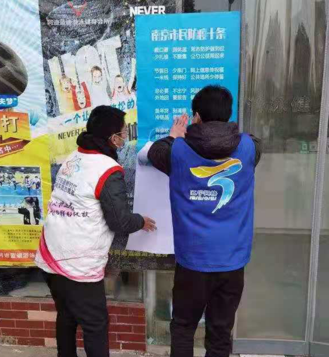 除此之外,社區(qū)網格員督促轄區(qū)九小場所做好疫情防控工作,在公共場所內粘貼《南京市民防疫十條》海報,發(fā)放防疫宣傳折頁,并提醒九小場所負責人及時清理場所內環(huán)境衛(wèi)生,有效提高了疫情防范意識。