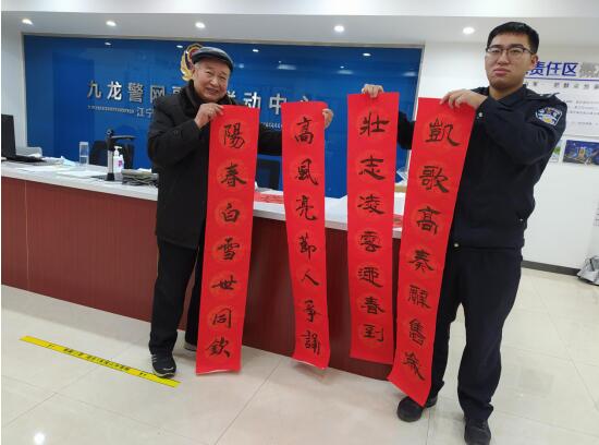 疫情還在發(fā)展,形勢仍然嚴(yán)峻,在生死時(shí)速的生命通道上有一群無懼逆行的勇士用行動(dòng)不斷前行。也有一束暖陽溫暖著逆行者。帶著“沉甸甸”的春聯(lián)和福字,志愿者與一線服務(wù)站點(diǎn)人員親切交流,了解疫情排查、上崗保障等情況,對投身疫情防控第一線的職工們表達(dá)了敬意,叮囑他們在堅(jiān)守崗位的同時(shí),要做好自身防護(hù),再接再厲,堅(jiān)決打贏疫情防控阻擊戰(zhàn)殲滅戰(zhàn)。一幅幅寓意吉祥的春聯(lián),一張張喜氣洋洋的大“福”字、“壽”字,免費(fèi)分發(fā)到一線服務(wù)站點(diǎn)人員手中,把美好的節(jié)日祝福送給大家,讓每個(gè)人提前感受到了濃濃的年味兒,溫暖一線服務(wù)站點(diǎn)人員心窩里。