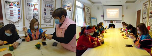 在手工制作環(huán)節(jié),志愿者現(xiàn)場(chǎng)展示了富有民族氣息的太陽(yáng)花的制作過(guò)程,大家認(rèn)真研究制作方法,通過(guò)認(rèn)真精細(xì)的粘貼、構(gòu)圖、拼接,學(xué)得津津有味。居民汪女士充分發(fā)揮巧手智慧,用彩色絲線編扎成的粗粗細(xì)細(xì)帶子,驚嘆一根黃線原來(lái)可以變出這么多的花樣,配上圖騰紋樣的小掛件,再配上婀娜多姿的花蕊兒,寓意內(nèi)心向陽(yáng),精神向上,生活美好。不僅美化裝飾空間,還增進(jìn)彼此間的情感。