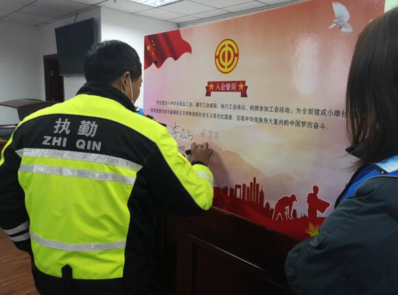 參加入會的外賣小哥、保潔工人、輔警等戶外工作者依次填寫入會申請并在入會誓詞上簽字。外賣小哥李志方說,“感謝工會對我們基層一線職工的關(guān)心支持,也很高興加入工會這個大家庭,讓我們這些戶外工作者有了一個共同的家,我將同全區(qū)各行各業(yè)的職工朋友們一起立足本職,團(tuán)結(jié)互助,把企業(yè)當(dāng)成自己的家,把工會當(dāng)成自己的家,愛企業(yè)、愛工會,做個好職工、好會員,為經(jīng)濟(jì)發(fā)展貢獻(xiàn)自己的一份力量”。隨后,工會主席為他們送上禮品,讓他們切實(shí)滿足了小小的心愿,點(diǎn)亮了他們對未來的信心。新會員們帶著對新年的美好期盼,朝著幸福的生活繼續(xù)努力工作。