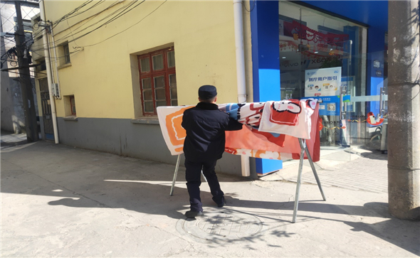 日常管理中,執(zhí)法大隊堅持“主干道嚴(yán)禁、次干道嚴(yán)控、背街小巷規(guī)范”的原則,持續(xù)對轄區(qū)內(nèi)主次干道、背街小巷、農(nóng)貿(mào)市場等人流車流密集區(qū)域進(jìn)行綜合治理,對靈順南路、九龍路、齊尚街等重點(diǎn)路段的倚門出攤、亂堆亂放等影響市容環(huán)境的要求立行立改,規(guī)范經(jīng)營;對靈順北路、寶塔北路、東陽路、集賢街的非機(jī)動車亂停亂放現(xiàn)象進(jìn)行勸離教育;對沿街“牛皮廯”、違規(guī)廣告牌、破損橫幅等進(jìn)行集中清理、清除,做到“鏟除一處、凈化一處”。