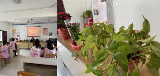 活動現(xiàn)場,為了幫助轄區(qū)女性更加直觀的了解花卉,花藝老師將農(nóng)家庭院適宜種植的花卉搬到現(xiàn)場,讓花卉作為講課的“道具”,在講解各類花卉養(yǎng)護特點及養(yǎng)護過程中的小常識之時,通過文字描述和實物對照相結(jié)合的方式,讓她們了解到家庭養(yǎng)花的好處、常見的室內(nèi)花卉品種、如何選花、不同的花卉如何澆水、簡單防治病蟲害等。課堂中,她們認真聽課,并不時提出自己在花卉種植中遇到的問題。在花藝老師的解答中,消除疑惑,增進自己的養(yǎng)護水平。