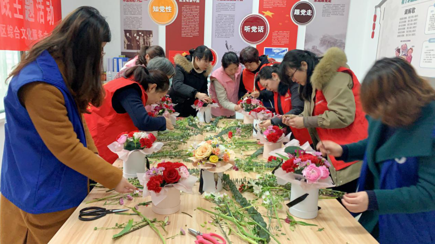 邵圣社區(qū)新時(shí)代文明實(shí)踐:姹紫嫣紅插花卉 歡聲笑語(yǔ)慶三八