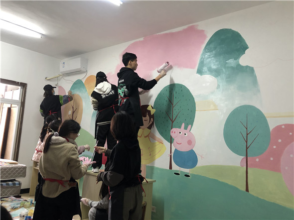 3月6日,由南京曉莊學院團委策劃的主題為“行知圓夢·用心用手繪就一片藍天”殘疾人居室手繪公益活動,在君子殘疾人之家正式開展。本次活動,經過為期2個月的籌備,邀請?zhí)厥鈨和逃龑<?、心理學專家、藝術設計專家親臨指導,由南京曉莊學院美術系百名志愿者執(zhí)筆完成,設計創(chuàng)作了一系列不同主題的手繪作品,并成功為君子殘疾人之家殘疾學員10間臥室進行美化改造。在這充滿溫情的“雷鋒月”,志愿者用實際行動來傳承和弘揚雷鋒奉獻友愛、互助進步的志愿精神,為殘疾孩子圓夢,為君子殘疾人之家的文化建設添上濃重一筆。