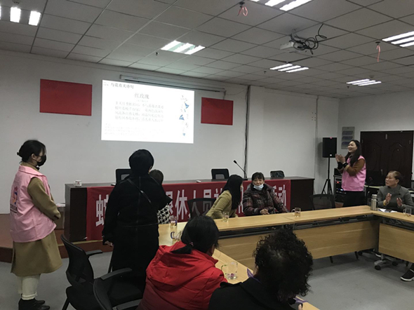 隨后,大家在志愿者的帶領(lǐng)下制作花飾,小心地將花瓣、絲帶粘貼在底座上,不一會各具特色的花飾就做好了。大家開心地合影留念,紛紛認(rèn)為社區(qū)應(yīng)多開展此類活動,提升居民生活品質(zhì)。