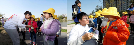 “我們的母親河發(fā)源于哪里?”“我知道,我來(lái)答!”這是知識(shí)問(wèn)答游戲現(xiàn)場(chǎng),頭戴“小黃帽”的孩子們正在舉手踴躍搶答著,吸引了不少行人駐足觀看。節(jié)水愛(ài)水是活動(dòng)的一個(gè)主題,受到老師的啟發(fā),大家想出了許多日常生活中的節(jié)水小妙招:洗臉?biāo)⒀烙萌萜鞴?jié)水,洗衣服的水可以拖地,洗澡水可以沖馬桶,淘米水可以澆花、少用一次性塑料袋的白色垃圾等。在活動(dòng)過(guò)程中,志愿者講述了一個(gè)“愛(ài)心放生”小故事,小朋友昊昊看到一個(gè)在河邊釣魚(yú)的叔叔桶里有一條受傷的小魚(yú),見(jiàn)其可憐,于是央求媽媽將魚(yú)買(mǎi)下帶回家放在魚(yú)缸里照料。不料小魚(yú)病好后也沒(méi)什么精神,甚至還屢屢撞魚(yú)缸。昊昊不解,問(wèn)媽媽。媽媽回答說(shuō)魚(yú)兒也有家庭,它渴望和家人相聚。昊昊經(jīng)過(guò)心里斗爭(zhēng),雖然十分不舍,但還是將魚(yú)兒放回秦淮河。