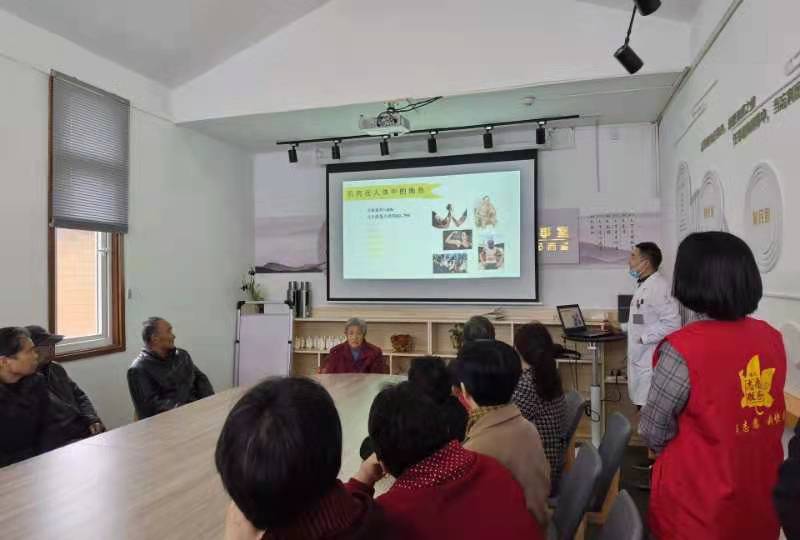 義診活動開始前,老年醫(yī)學(xué)科王權(quán)醫(yī)生首先給村民們舉辦了一場關(guān)于“肌少癥防治”的科普講座,為村民們講解了什么是“肌少癥”、肌少癥的表現(xiàn)和危害及防治策略等專業(yè)知識。特別是從營養(yǎng)學(xué)的角度,向村民們普及如何通過飲食調(diào)整增加營養(yǎng),以達到預(yù)防和治療肌少癥的目的,提高老年人的健康防病意識。