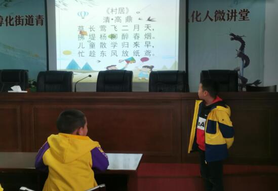 繆允哲小朋友帶領(lǐng)大家朗誦古詩(shī):《村居》。他吐字清晰、聲音洪亮、韻感十足,贏得了大家的喜愛(ài)和熱烈的掌聲。