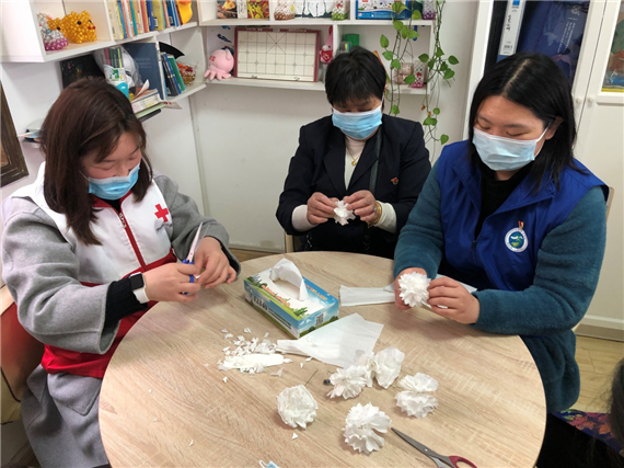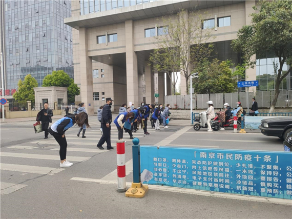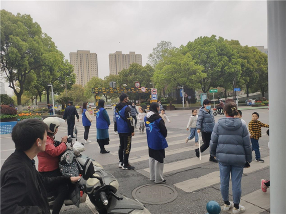 一大早,網格員、志愿者就在辦公室手工制作小白花,以祭英魂。9點整,網格員和交通幼兒園大班全體師生出發(fā)前往竹山林園,網格員為了保障孩童安全,自發(fā)組成人墻,在斑馬線上為孩子們保駕護航。