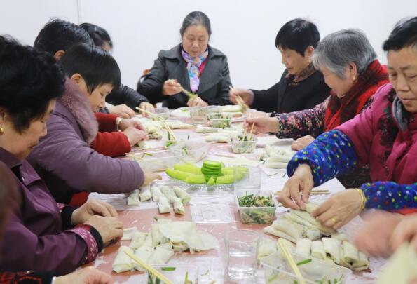 活動現(xiàn)場,新時代文明實踐站的志愿者們將制作春卷的食材擺上桌,現(xiàn)場氣氛立即活躍了起來。前來參加活動的叔叔阿姨們擼起袖子、洗凈手,將肉沫、蔬菜沫放入盆中,倒入調(diào)料,攪拌均勻,忙得不亦樂乎。村內(nèi)鄰里之間親如一家,現(xiàn)場氛圍一片祥和,大家一邊包春卷,一邊暢聊本地清明風(fēng)俗習(xí)慣。閑聊間隙,在一雙雙巧手下,蒜黃的、韭菜的、蘿卜的,各種口味的春卷被制作完成。