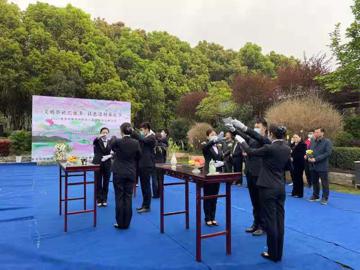 4月3日南京市江寧區(qū)秣陵街道牛首社區(qū)在隱龍山墓園開展了主題為“文明公祭,遙寄哀思”的集體公祭儀式,伴隨著莊重肅穆的音樂聲,公祭祭禮儀式正式開始,首先由工作人員入場(chǎng),向所有落葬在隱龍山墓園的逝者敬獻(xiàn)花籃,隨后工作人員行三祭禮,以素果、美酒、清香之儀,向所有逝者致以思念之情。