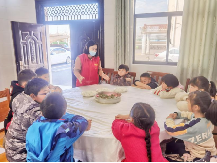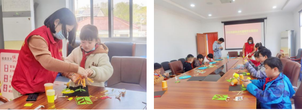 “先把紙杯對(duì)折,在上面畫(huà)豎線。再沿著畫(huà)的線剪開(kāi),把紙杯展開(kāi)我們就得到了一朵紙做的菊花。”社區(qū)志愿者正在教孩子們?cè)鯓又谱魇止ぞ栈?。民主村留守兒童?shù)量不在少數(shù),為了給孩子們帶來(lái)關(guān)愛(ài)和陪伴,清明節(jié)社區(qū)工作人員將孩子們組織起來(lái)參加活動(dòng),豐富了孩子們的假期生活。