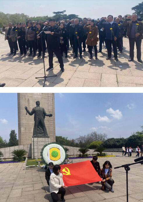 在莊嚴(yán)肅穆的雨花臺(tái)烈士就義群雕前,講解員向大家講述了烈士就義群雕的由來(lái)和革命歷史。在紀(jì)念碑前,全體黨員和工作人員整齊肅立,低頭默哀,以此緬懷革命先烈的不朽功績(jī),寄托對(duì)革命烈士的深切哀思。在黨旗下,黨員們重溫入黨誓詞,隨后緩步繞行紀(jì)念碑一周,向革命烈士致以崇高敬意。