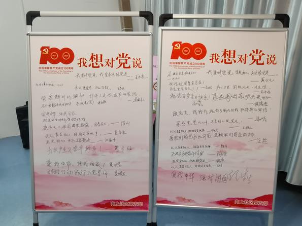 活動(dòng)現(xiàn)場(chǎng),四個(gè)黨小組分別進(jìn)行詩歌朗誦,聲音鏗鏘有力,氣勢(shì)恢宏。黨員們用自己的真實(shí)情感表達(dá)了對(duì)黨、對(duì)祖國的熱愛、贊美與祝福,傳遞了慶祝建黨100周年,永遠(yuǎn)跟黨走的真摯情誼和豪邁宣言。隨后,黨員們一一上臺(tái),現(xiàn)場(chǎng)書寫想對(duì)黨說的話,一句句發(fā)自肺腑的感言和祝福閃爍著智慧的光芒,流露出廣大黨員對(duì)黨的忠誠和信任,深情抒發(fā)了對(duì)黨的熱愛敬仰之情。