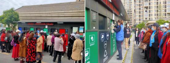 在統(tǒng)一組織下,“旅行團(tuán)”一行實(shí)地參觀江寧街道居民小區(qū)生活垃圾分類智能箱房,聽取了定時(shí)定點(diǎn)分類投放方式介紹,垃分督導(dǎo)員向大家現(xiàn)場(chǎng)演示智能箱房的操作流程并講解垃圾分類實(shí)用技巧。