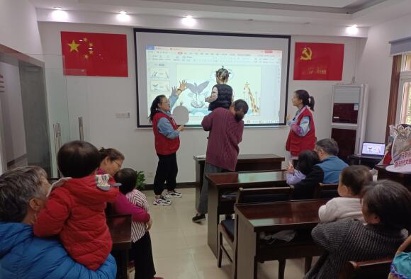 課堂在趣味手影游戲中拉開(kāi)帷幕。“音樂(lè)教育在幼兒教育中占有重要的位置。音樂(lè)能直接地影響人們,特別是影響兒童的感情,這對(duì)孩子認(rèn)識(shí)周?chē)澜缬兄厥獾淖饔谩?rdquo;課上,志愿者老師首先向幼兒家長(zhǎng)們簡(jiǎn)要介紹了音樂(lè)在幼兒成長(zhǎng)中的作用,引導(dǎo)和鼓勵(lì)家長(zhǎng)們重視學(xué)前音樂(lè)教育。在兒歌賞析環(huán)節(jié),志愿者老師帶領(lǐng)幼兒們一起跟唱,并進(jìn)行了簡(jiǎn)單的肢體律動(dòng),現(xiàn)場(chǎng)充滿了歡快的氣氛。