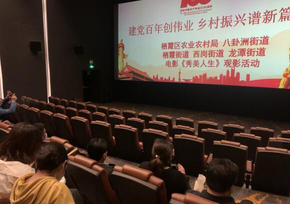 為推進社會主義精神文明建設,共同體會“建黨百年創(chuàng)偉業(yè) 鄉(xiāng)村振興譜新篇”的主題內(nèi)涵,近日,南京市棲霞區(qū)棲霞街道石埠橋村新時代文明實踐站的志愿者、黨員在棲霞區(qū)農(nóng)業(yè)農(nóng)村局組織下走進電影院,觀看電影《秀美人生》。