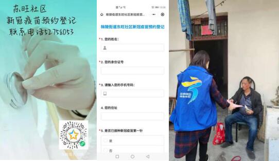 二是東旺社區(qū)率先采用微信小程序“問(wèn)卷星”,發(fā)布于各微信群等網(wǎng)絡(luò)平臺(tái),更方便快捷及時(shí)有效的通知居民疫苗預(yù)約,讓居民可以?huà)叽a登記。網(wǎng)絡(luò)平臺(tái)發(fā)布接種點(diǎn)政策安排和預(yù)約登記方式等重要信息,全面推行疫苗接種承諾公示制度,不斷擴(kuò)大宣傳覆蓋面,提升居民知曉率,全力以赴確保轄區(qū)人員應(yīng)接盡接。