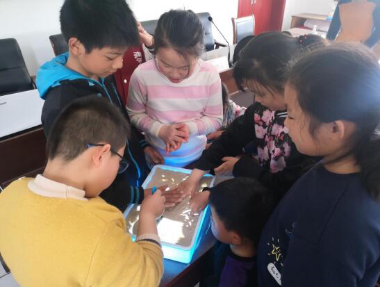活動(dòng)中,巾幗志愿者以電影敘述的生動(dòng)方式,以榮格畫作《黃金城堡》、納瓦霍沙游、藏傳佛教曼荼羅為起點(diǎn),展現(xiàn)沙畫與沙游平行發(fā)展的脈絡(luò),引領(lǐng)孩子們欣賞沙游自孕育、創(chuàng)立到成熟、演變,到逐漸成為開放體系的全景圖,概括洛溫菲爾德、卡爾夫、多美尼科三位前輩專家的突出貢獻(xiàn)。一漏、一抹、一勾、一點(diǎn)……在沙畫老師的帶領(lǐng)下,大家開始了“慶祝建黨100周年”主題沙畫制作。巾幗志愿者耐心的向大家介紹沙畫的基本手勢和握沙動(dòng)作,有條不紊地教大家如何施展“魔法”,喚發(fā)手頭上沙子的神奇魅力。大家認(rèn)真聽著巾幗志愿者的講解,在沙畫臺上進(jìn)行創(chuàng)作,用不同的手法將手中的沙子勾畫出黨旗、黨徽、長城等一幅幅生動(dòng)的圖案,表達(dá)自己的愛黨愛國之情。大家沉浸在沙畫帶來的獨(dú)特樂趣的同時(shí)也重溫著黨的歷史。