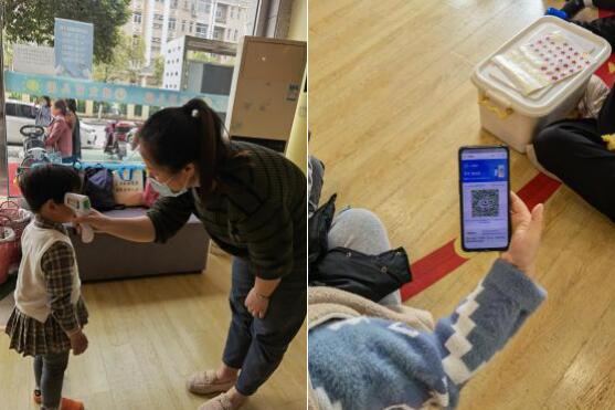 活動開始前,老師為前來參加活動的家長和孩子們逐一測量體溫,并查看蘇康碼做好相關(guān)記錄,配合防疫要求。