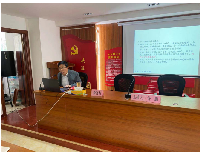 學(xué)習(xí)黨史知識,汲取奮進(jìn)力量?;顒又?,邀請了區(qū)委黨校俞有利教授以《江寧人民革命斗爭史 》為主題為全體黨員干部帶來一堂別開生面的專題黨課?,F(xiàn)場,俞有利教授用珍貴的史料和生動的講解,為我們再現(xiàn)了中國共產(chǎn)黨領(lǐng)導(dǎo)下的江寧人民從1937年建立江寧、橫山抗日游擊根據(jù)地到1945年江寧解放革命勝利的艱難歷程。熱情謳歌了革命軍民的英勇壯舉,引導(dǎo)黨員們從中汲取奮勇前進(jìn)的強(qiáng)大力量。