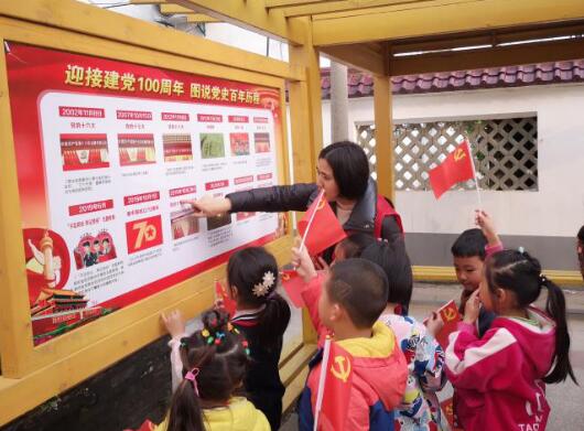 為發(fā)揚(yáng)優(yōu)良的革命理念,牢記立德樹人初心、堅(jiān)定愛黨、愛國理想信念,南京市江寧區(qū)東山街道高橋社區(qū)開展“高橋娃娃學(xué)黨史”學(xué)習(xí)教育,志愿者帶領(lǐng)孩子們來到前潘村學(xué)習(xí)長廊學(xué)習(xí)百年歷史。