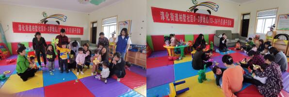 活動(dòng)開(kāi)始,社區(qū)志愿者通過(guò)帶孩子們跳舞等環(huán)節(jié)讓孩子們熟悉新的環(huán)境,平復(fù)緊張的情緒。隨后,志愿者根據(jù)根據(jù)孩子的年齡特點(diǎn)精心設(shè)計(jì)了不同的集體親子活動(dòng)內(nèi)容,有手工繪畫(huà)制作、律動(dòng)、鉆山洞等。孩子們?cè)谟淇斓挠螒蛑写龠M(jìn)其動(dòng)作技能、語(yǔ)言、行為習(xí)慣、社交等方面的發(fā)展,志愿者在活動(dòng)中對(duì)家長(zhǎng)進(jìn)行指導(dǎo),教他們?cè)诩依锶绾瓮瓿蛇@些親子活動(dòng),為家長(zhǎng)解答育兒困惑,家長(zhǎng)們感到受益匪淺。