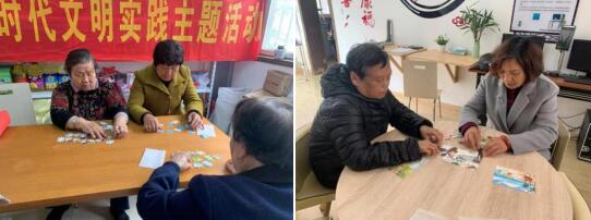 活動當天,社區(qū)內(nèi)的老年朋友相聚在中前社區(qū)活動中心,拼圖、下棋、七巧板、打牌、閱讀等各式各樣的活動供老人們選擇。每次都積極參加社區(qū)活動的劉奶奶表示,這里就是他們的“第二個家”。居民張奶奶也說道:“社區(qū)真是太貼心了,在活動中心,我們平時沒事就來這里打打牌、聊聊天,旁邊還有報紙和書看,戴著老花鏡看看雜志也挺好。”活動中心不僅是老人們休閑娛樂的場所,也是鍛煉腦力的好去處。老人們下象棋,是情趣高雅的愛好,不僅能鍛煉思維能力,對促進身心健康也有積極作用。