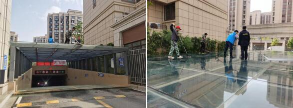 從早上7:00開始,志愿者、在崗和不在崗的工作人員以及社區(qū)領(lǐng)導(dǎo)等全民掃起來,為煥新小區(qū)面貌貢獻(xiàn)出自己的一份力量。大家把小區(qū)把所有的路燈桿、公共設(shè)施和指示牌等等,整體進(jìn)行了清潔和擦拭,對公共區(qū)域進(jìn)行了全面的消毒。在地下車庫的進(jìn)出口,大家拿著拖布、水槍對外觀玻璃也進(jìn)行了一番清洗??諝庵醒笠缰慌蓜趧?dòng)光榮的氣氛。