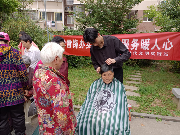 活動(dòng)中,社區(qū)“常春藤”居家養(yǎng)老服務(wù)站準(zhǔn)備了趣味套圈活動(dòng),吸引了眾多社區(qū)居民的積極參與,既鍛煉了他們的判斷力和手眼協(xié)調(diào)能力,也為他們送上實(shí)惠好禮;沿街商鋪“古子”理發(fā)師手法嫻熟地為每位前來剪發(fā)的居民們理出清爽發(fā)型;社區(qū)共建單位中國郵政儲(chǔ)蓄銀行百水芊城支行工作人員耐心為居民宣講了反電信詐騙、第三代社保卡辦理等知識(shí);社區(qū)垃圾分類指導(dǎo)員與居民分享了垃圾分類常識(shí),幫居民巧記分類口訣,正確分類投放生活垃圾。此外,現(xiàn)場還設(shè)置了鏘剪磨刀區(qū),為居民解決生活小難題。