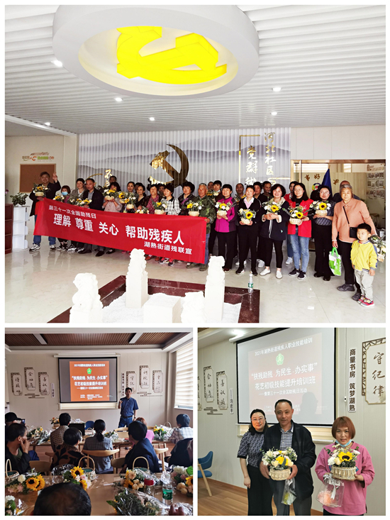 5月12日上午,在第三十一次“全國(guó)助殘日”來(lái)臨之際,為認(rèn)真落實(shí)黨史學(xué)習(xí)教育“我為群眾辦實(shí)事”相關(guān)要求,結(jié)合工作職能,南京市江寧區(qū)湖熟街道殘聯(lián)聯(lián)合湖熟街道河北社區(qū)在社區(qū)“村史館”舉辦了一期主題為:“扶殘助殘·為民生·辦實(shí)事”——花藝初級(jí)技能提升培訓(xùn)班活動(dòng)?,F(xiàn)場(chǎng)有40多名殘疾人進(jìn)行花藝插花技能提升培訓(xùn)。培訓(xùn)項(xiàng)目由殘疾人社會(huì)組織“南京生命泉助殘社”和南京楓嵐供應(yīng)鏈管理有限公司提供培訓(xùn)技術(shù)支持,為街道殘疾人進(jìn)行為期1天的職業(yè)技能提升授課服務(wù)。通過(guò)此項(xiàng)活動(dòng),切實(shí)深入為街道殘疾人群體辦民生實(shí)事,在助殘日節(jié)日氣氛中,詳細(xì)了解殘疾人生產(chǎn)生活和迫切需求,掌握殘疾人基本信息,幫助解決實(shí)際困難,真正把黨和政府的關(guān)心關(guān)愛(ài)送到殘疾人身邊。