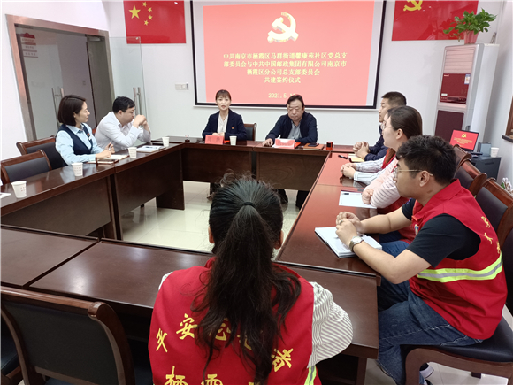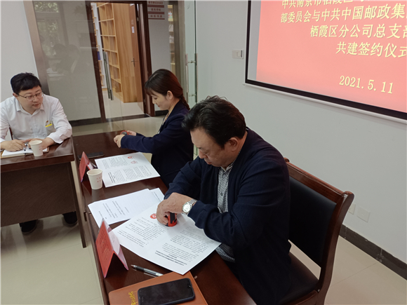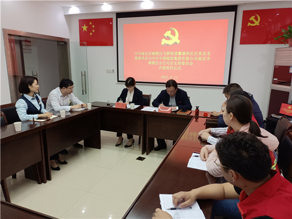 為進(jìn)一步深化黨史學(xué)習(xí)成效,更好地服務(wù)轄區(qū)居民。5月11日上午,南京市棲霞區(qū)馬群街道馨康苑社區(qū)黨總支與中國郵政集團(tuán)有限公司南京市棲霞區(qū)分公司黨總支共建簽約儀式在社區(qū)二樓會議室隆重召開,進(jìn)一步拓寬基層黨建新路徑的同時,謀劃了區(qū)域內(nèi)社企黨組織合作共贏新篇章。當(dāng)天,共建雙方黨總支書記、委員與黨員代表參加了本次活動。
