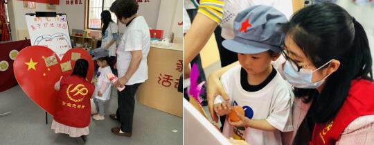 “萌萌噠劇場”兒童小劇場環(huán)節(jié),圍繞“雞毛信”故事展開。志愿者家長們給小朋友們邊演邊講,將“雞毛信”這個紅色故事用簡潔明了的方式表演出來,生動的表演讓觀看節(jié)目的家長和孩子們都更加了解了雞毛信的故事,在故事的余溫中,各組親子家庭以家庭為單位開始了“萌萌送信使者”環(huán)節(jié),家長和孩子一同制作雞毛信并且完成送信的小游戲,成功送達的家庭獲得一枚小紅旗,而小朋友們則獲得了專屬的英雄標志——紅軍帽子。拿到紅軍帽子的小朋友蹦蹦跳跳的戴好,家長們在一旁拍照片,小孩子也在懵懂中領悟了紅軍帽子的光榮感。