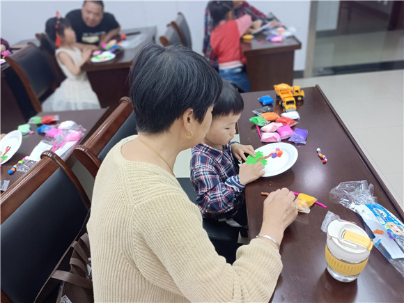 課上,社區(qū)志愿者老師首先通過(guò)提問(wèn)互動(dòng)的形式,了解了大家對(duì)綠色和環(huán)境保護(hù)的理解,并舉例讓大家對(duì)居民的一些生活行為進(jìn)行了評(píng)斷,呼吁大家文明生活,自覺(jué)愛(ài)護(hù)身邊環(huán)境。隨后,跟隨志愿者老師的講解和示范,家長(zhǎng)和孩子們齊動(dòng)手,揉、捏、粘、貼……合力完成紙盤(pán)彩泥作品,少兒們一一上臺(tái)介紹了自己的作品。綠綠的草地、五彩的花朵、悠閑的毛毛蟲(chóng)、可愛(ài)的蘑菇等讓大家體會(huì)了自然和諧的美麗和環(huán)保的重要性。