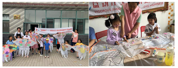 在活動中,老師向孩子們講解了兒童節(jié)的來源和童年的一些小游戲。隨后,老師為孩子們準(zhǔn)備了空白的風(fēng)箏、顏料、畫筆及圍裙等活動工具,讓孩子們隨意發(fā)揮自己的想象力,在風(fēng)箏上繪制出自己喜歡的顏色和圖案。在老師的指導(dǎo)下,家長們和孩子一起合作,從調(diào)色、綁線、試飛都 全程參與,孩子們在爸爸媽媽們的幫助下完成了風(fēng)箏繪畫,畫上了自己喜歡的圖案和顏色?;顒咏Y(jié)束后,家長朋友們帶著小朋友們一起去放飛風(fēng)箏。